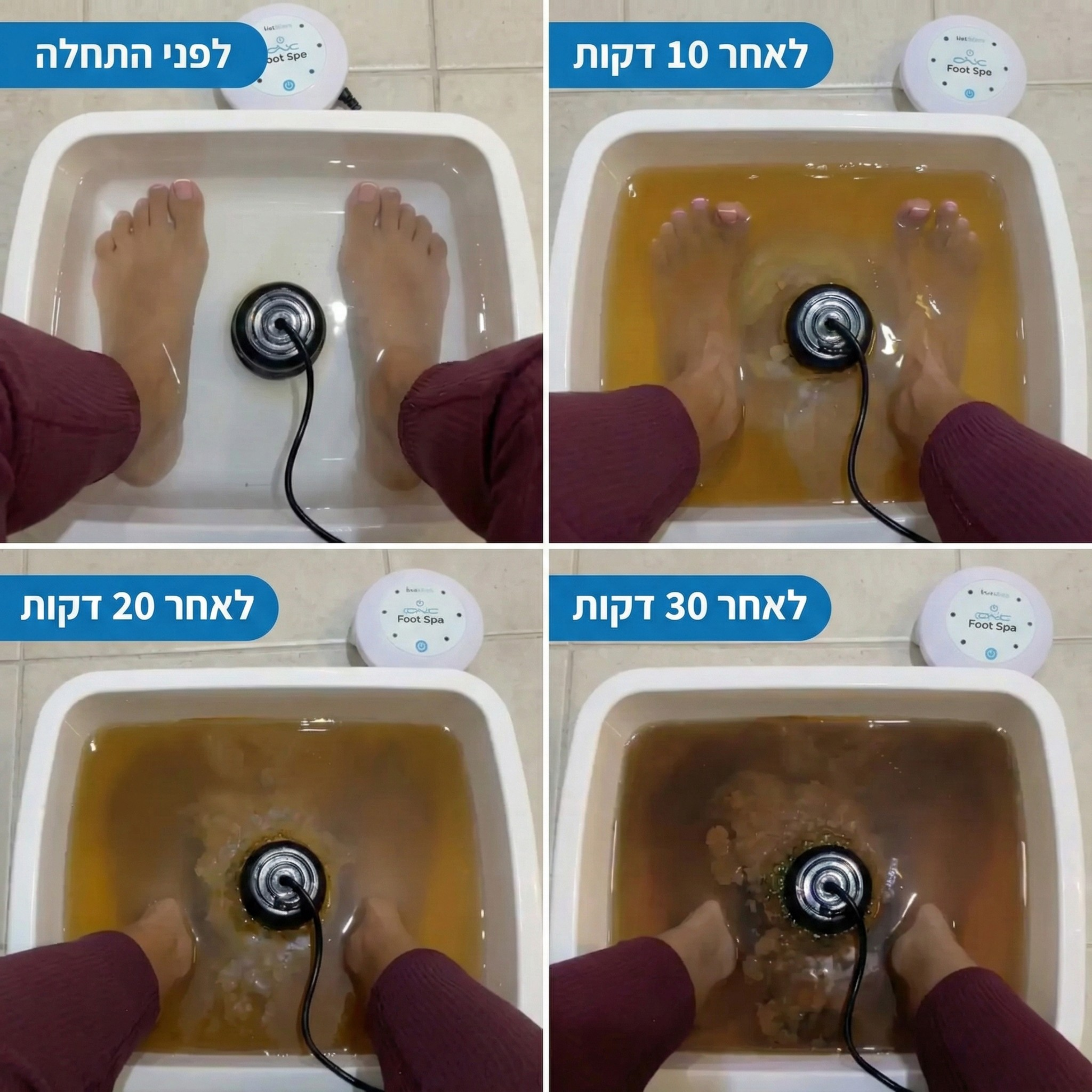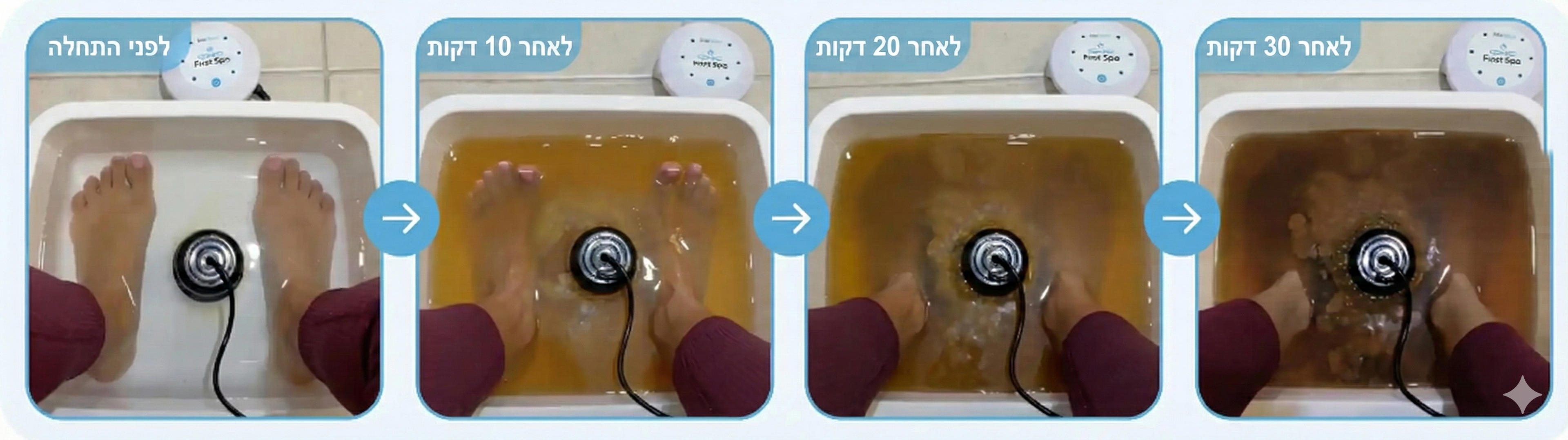 הייתי בטוחה שהמכשיר פשוט צובע את המים בחום. אבל אחרי 20 דקות התחילו לצוף במים חתיכות שחורות וקצף שומני שלא הגיע מהמלח. היה לזה אפילו ריח לא נעים. הגועל הזה שכנע אותי שזה יצא ממני. התחושה ברגליים אחרי זה הייתה כאילו הורדתי משקולות.